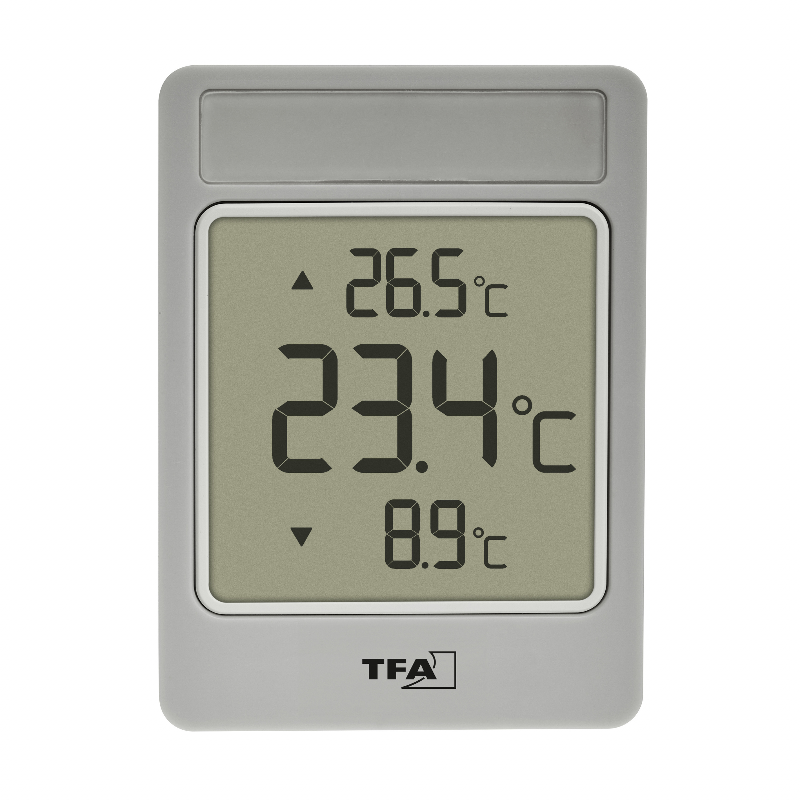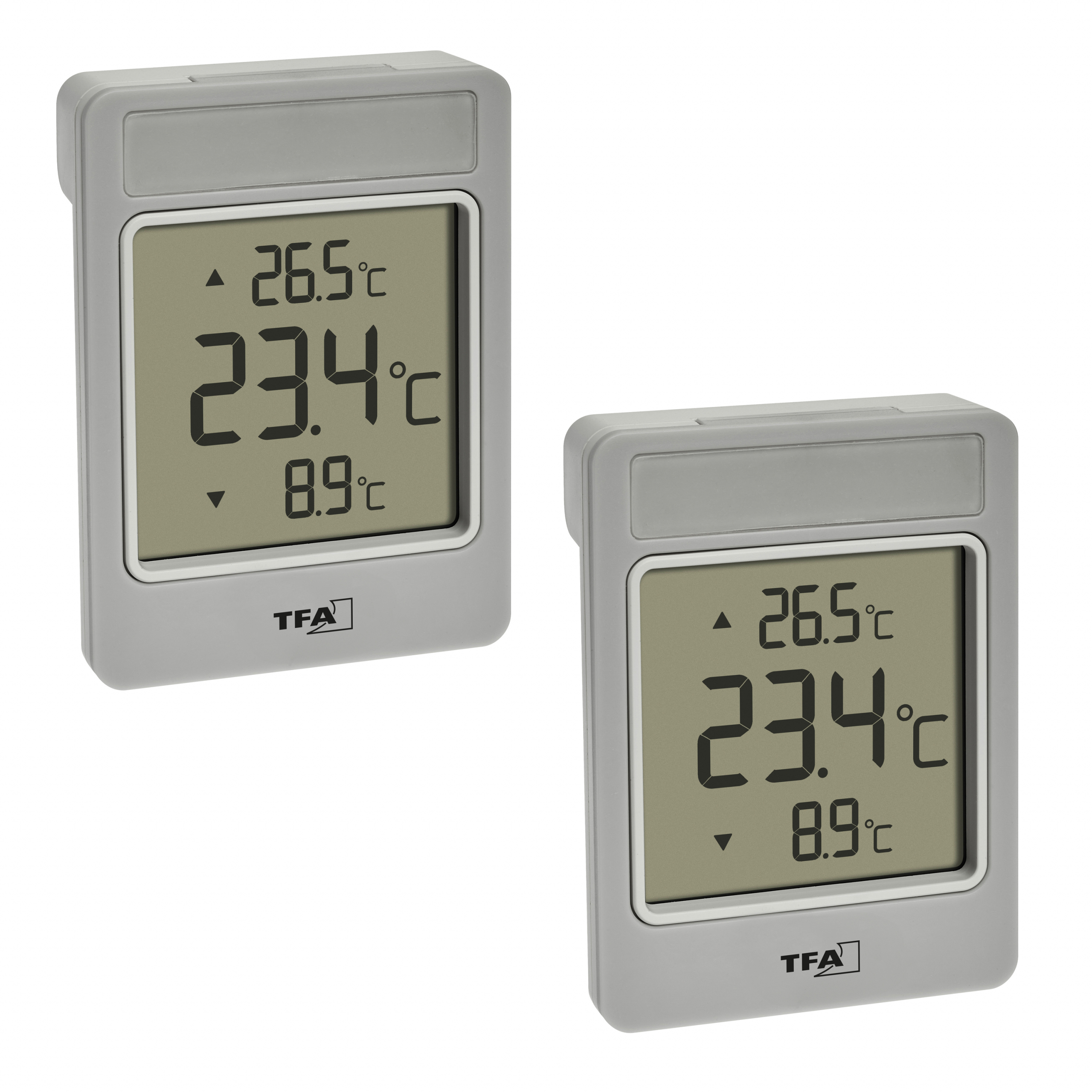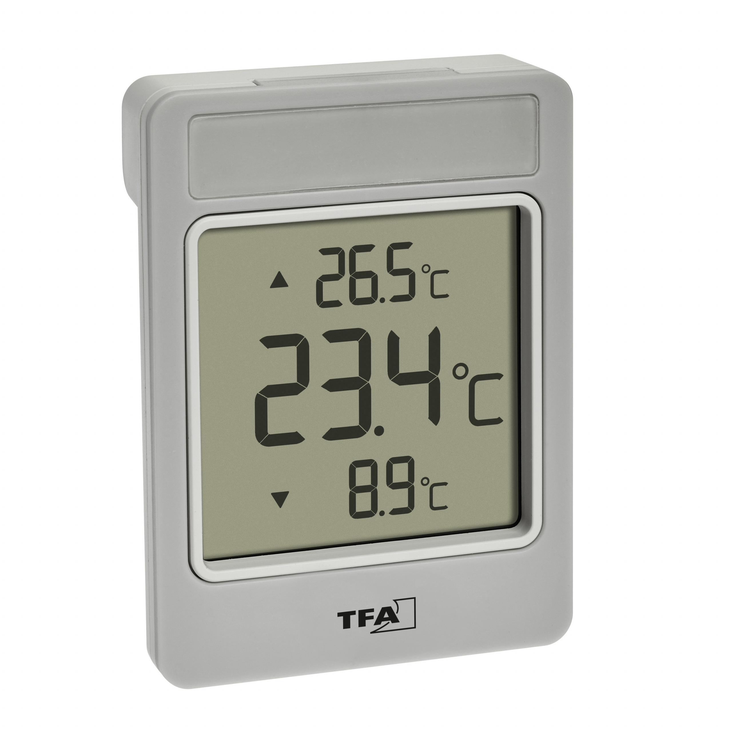 Finding out about the weather outside can’t get any easier than this! With WINDOO from TFA, you always have the outside temperature right in front of your eyes, as it is displayed in easy-to-read large digits practically directly on the window pane. The functional thermometer is attached to the outside of the window and does not obstruct the view outside; the temperature can be conveniently read from indoors. The day’s highest and lowest values are included and always updated with the daily automatic reset..