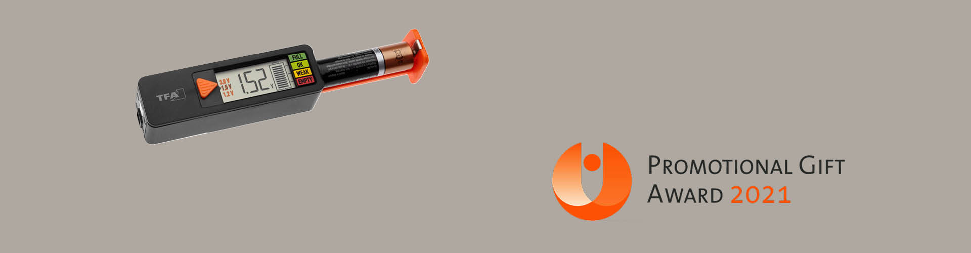 The jury has decided: The BatteryCheck battery tester won despite fierce competition and was awarded the Promotional Gift Award 2021 together with other prize winners. The Promotional Gift Award is an international competition to reward creative and innovatively used promotional products or product range concepts. The prize has been awarded by the Cologne-based publishing house WA Media since 2003.